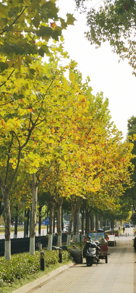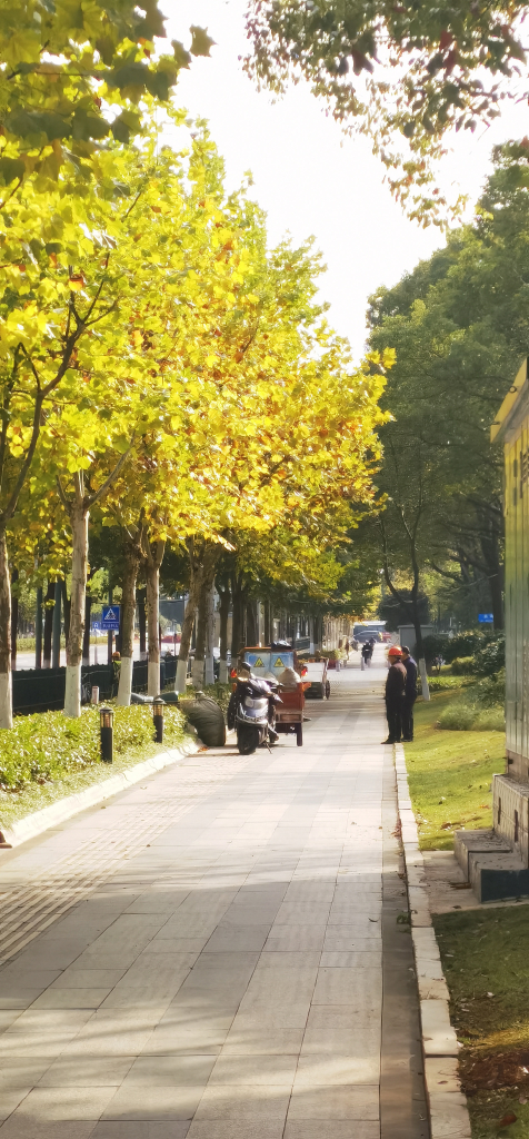 下午回去天气不错出去走了走,走到一个地方银杏树刚好被太阳照着感觉挺好看的便拍了下来。